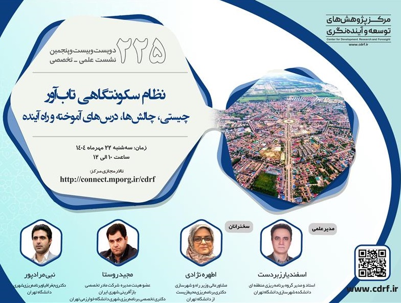 دویست و بیست و پنجمین نشست علمی -تخصصی با عنوان"نظام سکونتگاهی تاب آور، چیستی، چالش ها، درس های آموخته و راه آینده